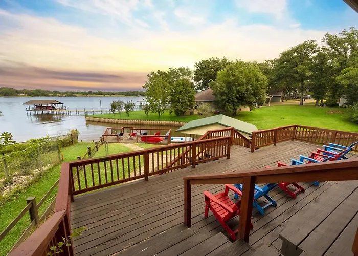 **Lakefront Retreat is an exquisite getaway designed for comfort and relaxation just outside Mabank, Texas. This stunning residence accommodates up to 15 guests, making it an ideal choice for family gatherings or a reunion with friends. Featuring panoramic views of the serene lake, this retreat harmonizes luxury and nature to create an inviting atmosphere.**